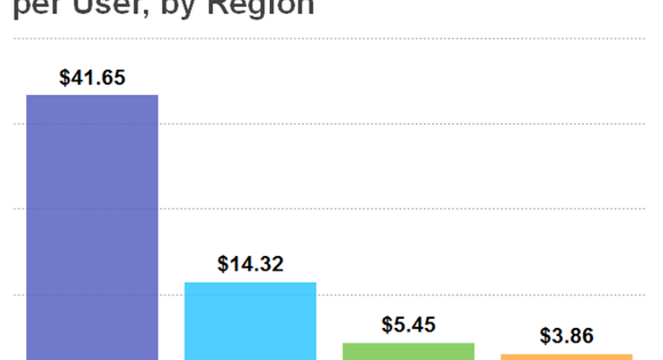 The Worldwide ARPU for FY 2015 was$11.96, up 27% year over year. In U.S. &Canada, the figure came in at $41.65, which was up 45% year over year. This is, by far, the region with the highest and fastest-growing ARPU.Facebook was founded in the United States and has been operating in the U.S. and Canada for much longer than in most other parts of the world. Internet use is widespread, wealth and disposable income are high, and spending on advertising has been long established.