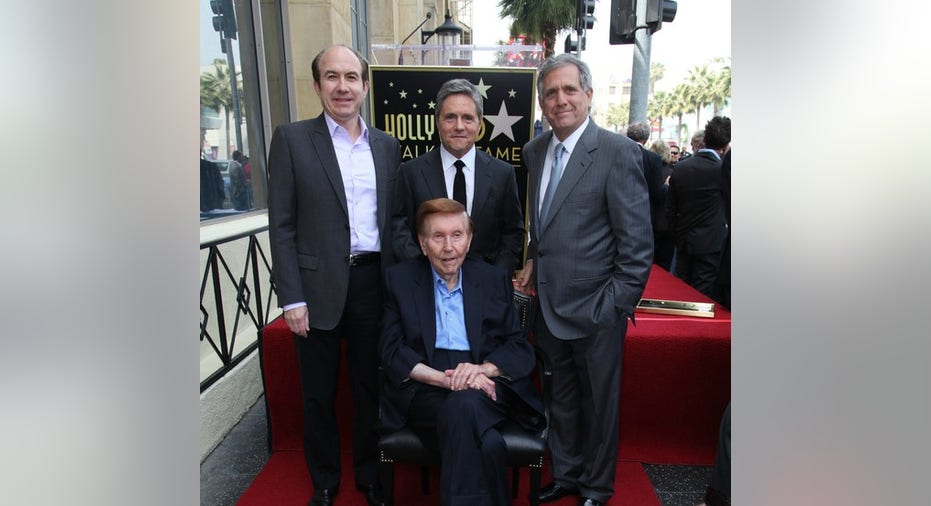 Redstone, seated, is shown during happier times as he received a star on the Hollywood Walk of Fame. Standing above him, left to right, are Viacom CEO Philippe Dauman, Paramount Pictures CEO Brad Grey, and CBS CEO Les Moonves. Image source: Viacom.