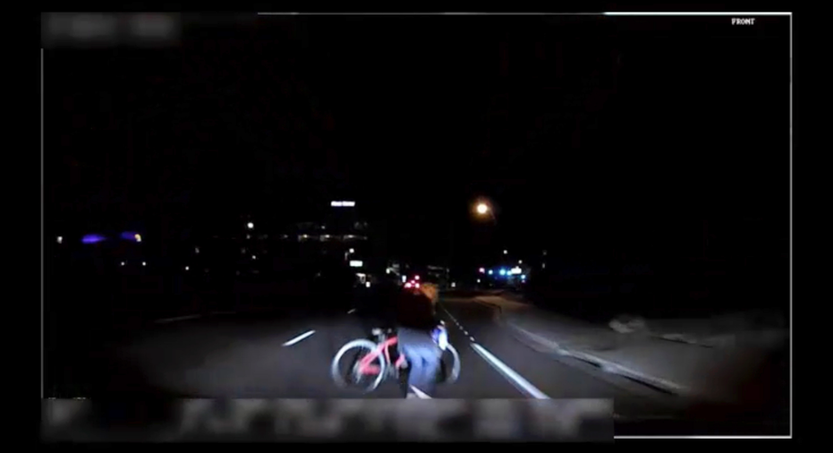TEMPE, Ariz. – Video of a deadly self-driving vehicle crash in suburban Phoenix shows a pedestrian walking from a darkened area onto a street just moments before an Uber SUV strikes her.