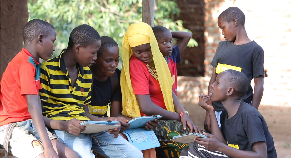 In this undated photo provided by XPRIZE, children in a village in the Tanga region of Tanzania gather to learn from tablets using open-sourced software that would easily be downloaded by illiterate children to teach themselves to read. That's what nearly 200 teams from around the world have spent more than a year in impoverished villages in Tanzania trying to do. The winner of this latest competition for a $10 million XPRIZE for global innovation is being announced Wednesday, May 15, 2019, in Los Angeles. (Courtesy XPRIZE via AP)
