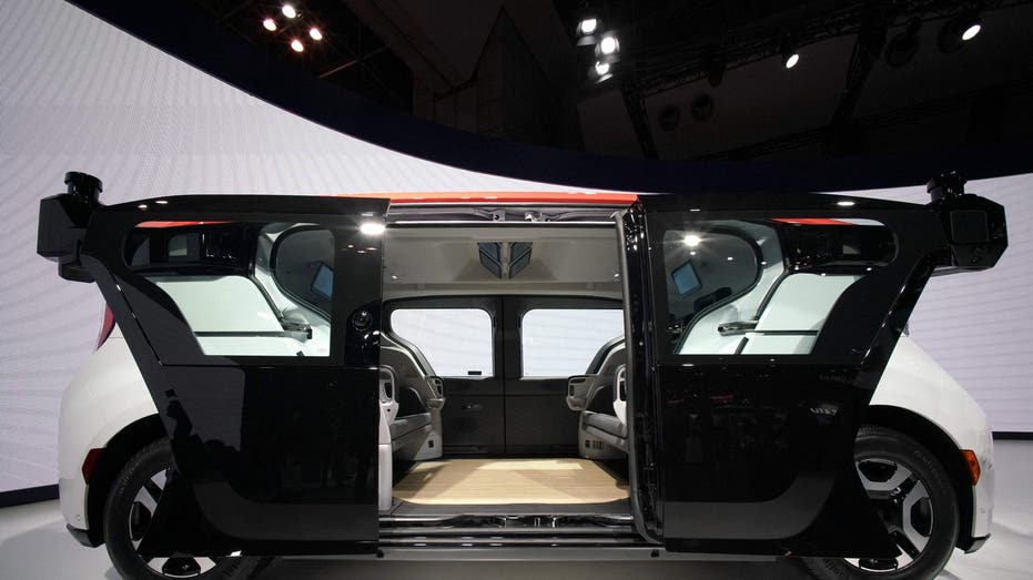 The Cruise Origin, a self-driving vehicle with no steering wheel or pedals, is displayed at the Honda Motor's booth during the press day of the Japan Mobility Show in Tokyo on October 25, 2023. ( KAZUHIRO NOGI/AFP via Getty Images / Getty Images)
