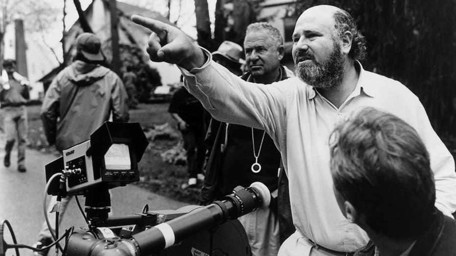 Rob Reiner gestures near a camera while crew members surround him outdoors on the set of his film, "North" in 1994. (Andy Schwartz/Fotos International/Getty Images)