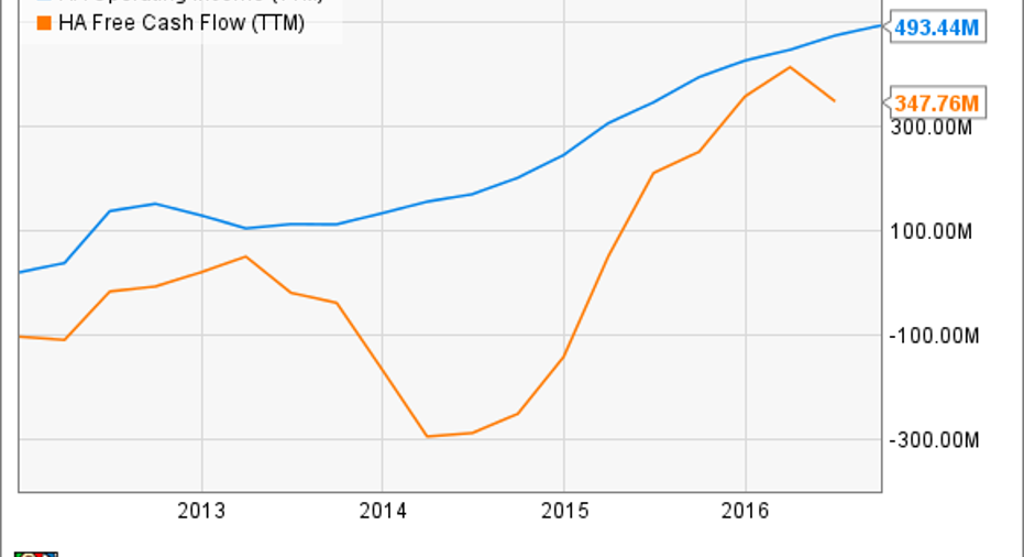 Hawaiian Holdings Operating Income and Free Cash Flow data by YCharts.