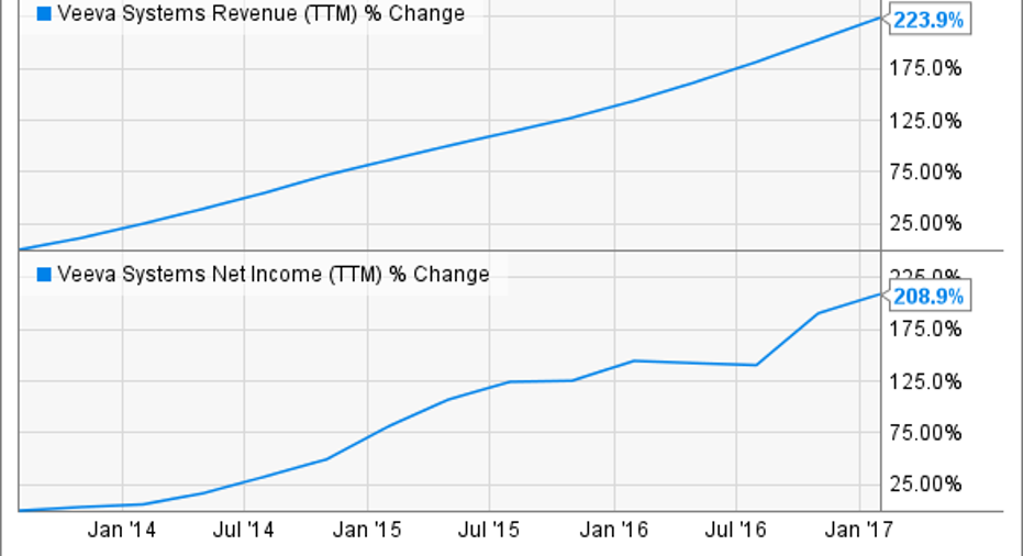 Veeva believes that the solutions that it has crafted for the life-sciences industry can also be useful to other industries. In the near term, the company has set its sights on marketing to chemical and consumer packaged goods manufacturers, but down the road, it believes that it could enter other industries, too. If the company has success in breaking into new industries, then I could easily see its upward trajectory continuing from here.