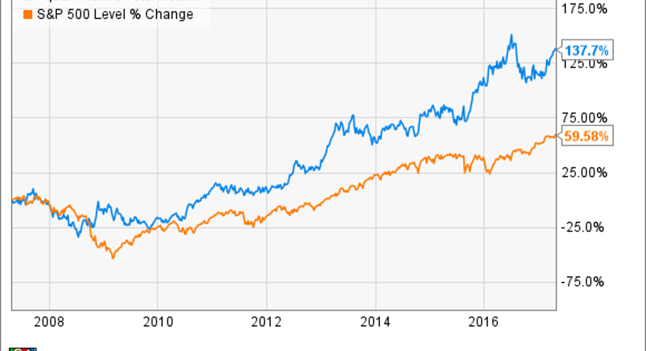 Aqua America's long-term investors have been rewarded handsomely. Over the past 10 years, the stock has generated a total return of approximately 138% -- handily beating the S&P 500, which has risen only about 60% during the same period.
