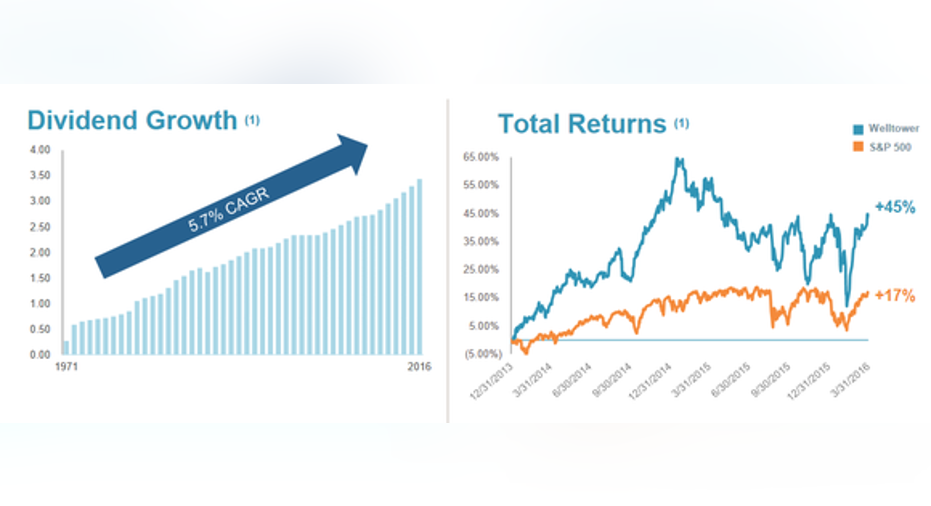Welltower has a 45-year history of dividend growth. Although it hasn't increased its payout every single year, it has done a great job of growing shareholders' income by an average rate of 5.7% per year. Even more impressively, Welltower has produced an average total return of 15.6% since its inception -- a remarkable level of performance to sustain for more than four decades.