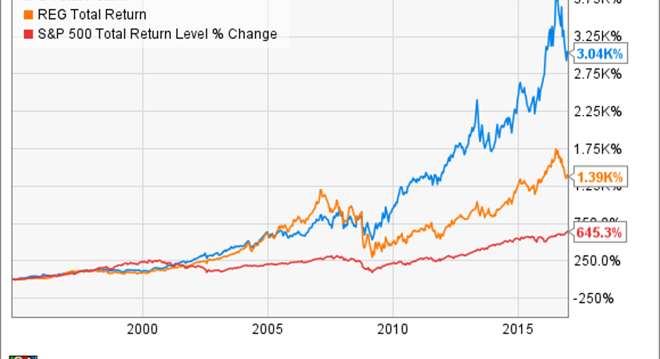 Regency Centers has delivered annualized returns of 12.5% since its 1993 IPO. This is certainly a respectable track record, as it beats the REIT average of 11.1% and handily surpasses the S&P 500's 9% total returns over that time period.