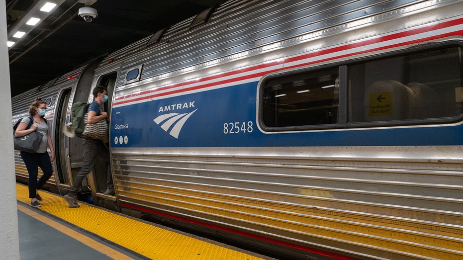 NEW YORK CITY - SEPTEMBER 15: People board an Amtrak train in the Moynihan Train Hall on September 15, 2022 in New York City. Following a breakthrough in negotiations that averted a strike of freight rail workers early Thursday morning, Amtrak was wo (Spencer Platt/Getty Images / Getty Images)