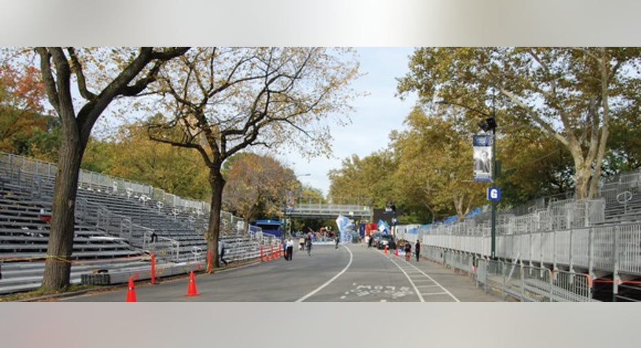 Crown Castle workers installing small cells atop streetlights around Central Park. Image source: Crown Castle.
