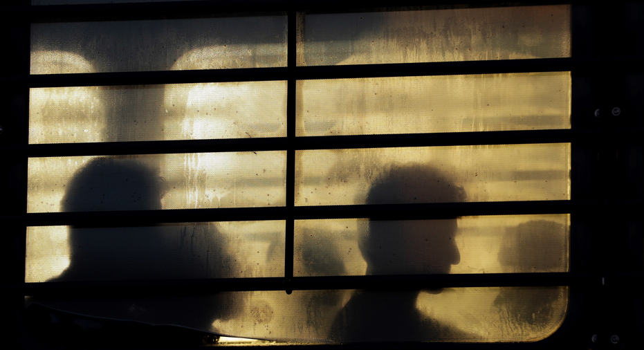 In this Nov. 16, 2018, photo, immigrants who entered the United States illegally wait to board a plane for a deportation flight to El Salvador by U.S. Immigration and Customs Enforcement in Houston. An obscure division of U.S. Immigration and Customs Enforcement operates hundreds of flights each year to remove immigrants. (AP Photo/David J. Phillip)