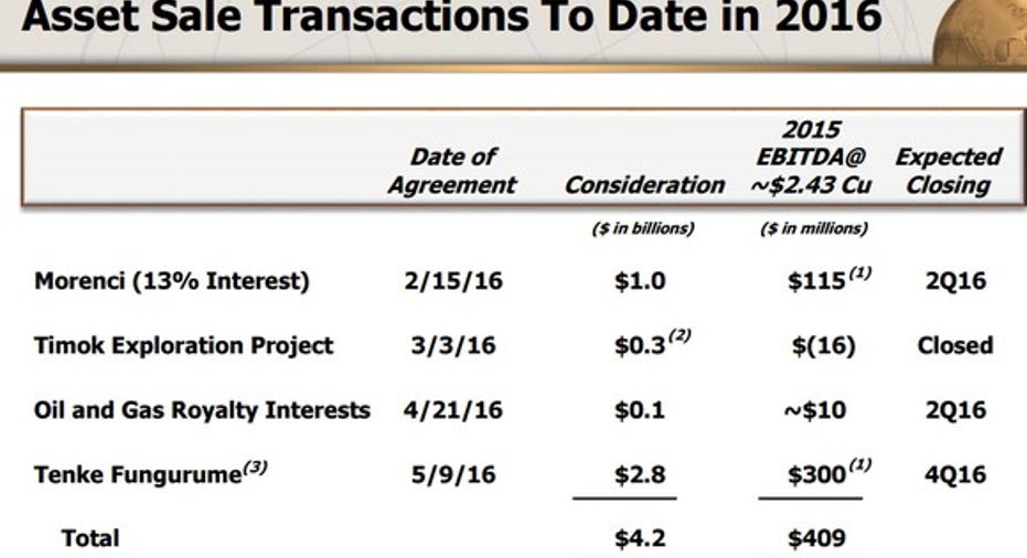 Freeport-McMoRan asset sales in 2016. Tenke and Morenci are copper mines. Source: Freeport-McMoRan investor relations.