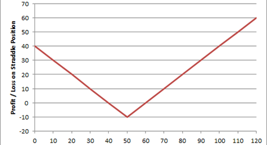 To see how the profit and loss potential on a straddle option works, take a look at the graph below: