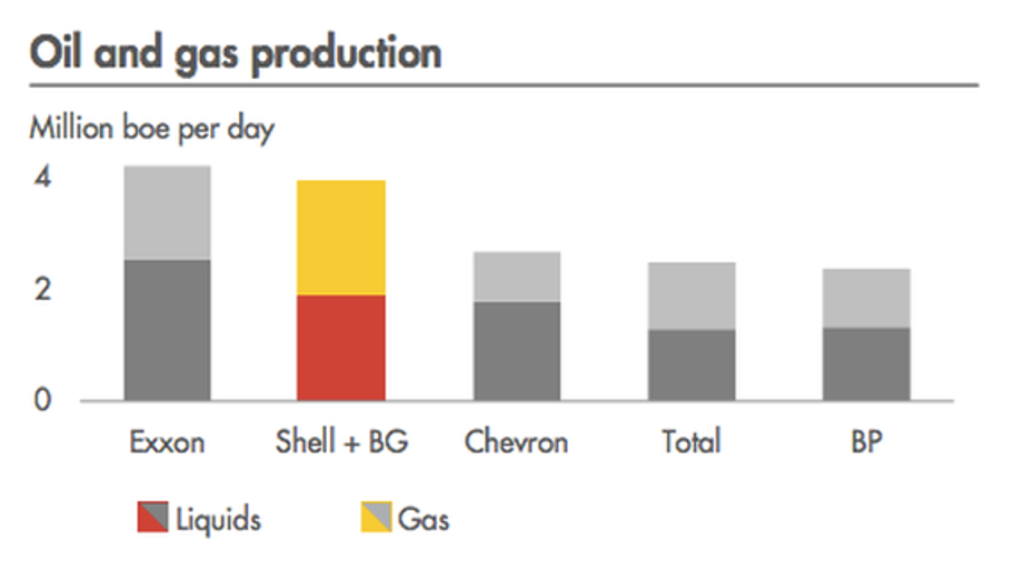 It's really not that different today, even after the roughly $50 billion the energy giant spent buying BG Group in early 2016. But that's really only half the story. The bigger picture is what matters here, and Shell has basically doubled down on its natural gas bet. Indeed, if you look at where Shell stands relative to the other integrated energy giants, you start to see a very different picture emerge.