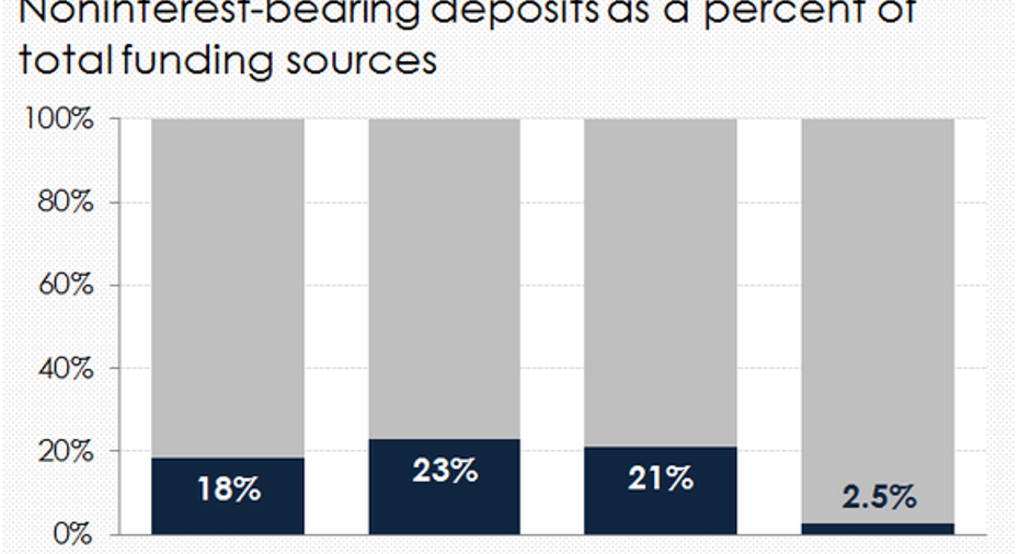 This raises the question: Why is JPMorgan Chase less sensitive to changes in interest rates than Bank of America but more so than Citigroup? There are a number of factors that play into this, but one of the most important stems from the amount of noninterest bearing deposits that each of these banks has access to in order to fund their assets.