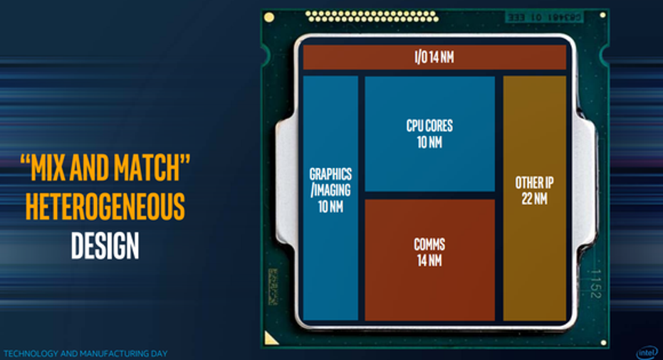 The executive explained how this new methodology allows Intel to "mix high-performance blocks of silicon and [intellectual property] together with low power elements made from different nodes for extreme optimization."