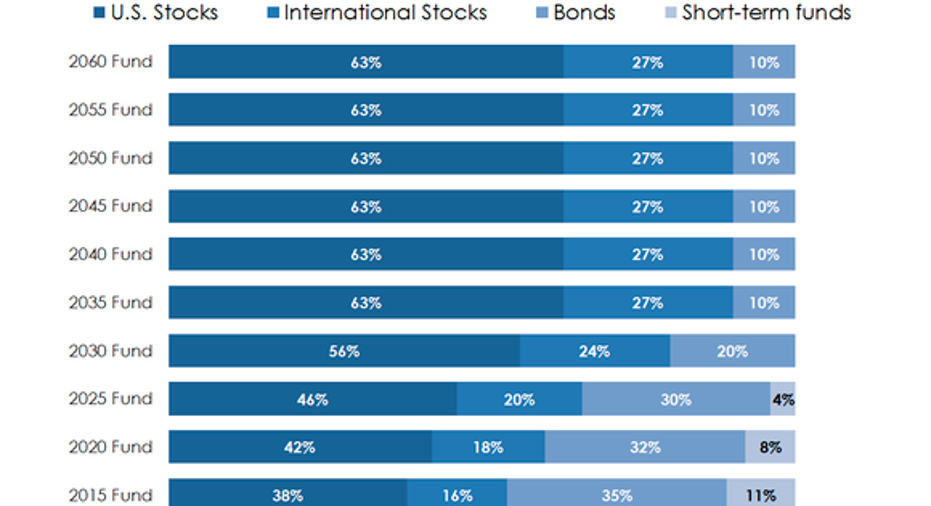 As an example, see how Fidelity's Freedom Fundsdesigned for 2020 retirees invest more conservatively than funds designed for 2050 retirees.