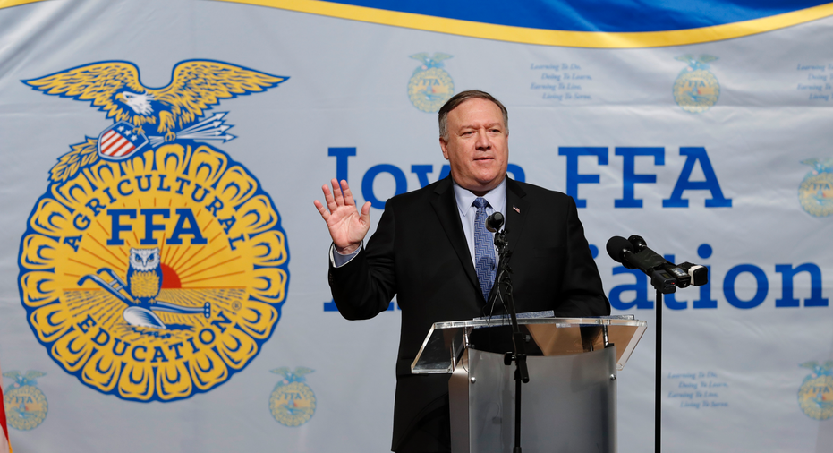 Pompeo, flanked by U.S. Ambassador to China and former Iowa Gov. Terry Branstad, spoke to a group of young suburban Des Moines Future Farmers of America members at a high school in Johnston, Iowa and a gathering of 200 Iowa Farm Bureau members. He toured a DowDuPont agricultural research facility and met with the state's Republican Gov. Kim Reynolds who has been supportive of Trump.