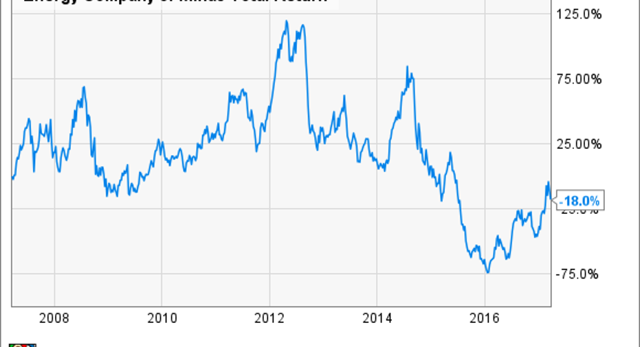 CEMIG is one of those siren-song investments: It's a regulated utility with a whopping 10% dividend yield. However, one thing to keep in mind is that the business is a public-private venture in which the local municipality owns half of the outstanding shares. In some cases, this can lead to a company trying to serve two purposes at the same time, when the needs of the state are different than the needs of investors. So it's no wonder that the company has struggled to generate consistent returns, even on a total-return basis, over the past decade: