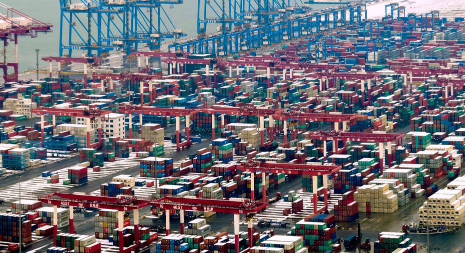 In this Feb. 14, 2019, photo, trucks move around containers stored at a port in Qingdao in east China's Shandong province. U.S. President Donald Trump said Sunday, Feb. 24, 2019, he will extend a deadline to escalate tariffs on Chinese imports, citing "substantial progress" in weekend talks between the two countries. (Chinatopix via AP)