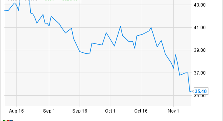 Fall 2016 has not been kind to solar investors.KWT data by YCharts.