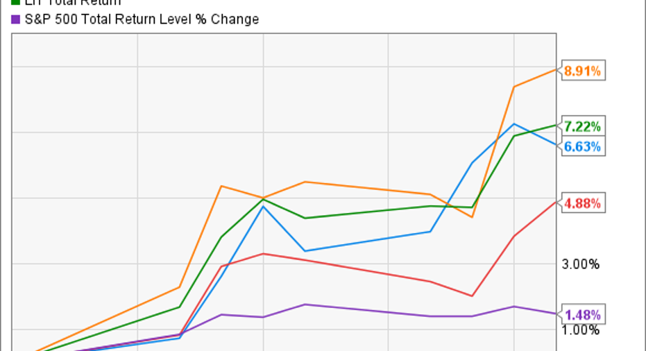 Data source: Yahoo! Finance (market caps) and YCharts (other data). Data to Jan. 12, except for 2016 total return. TTM = trailing 12 month.
