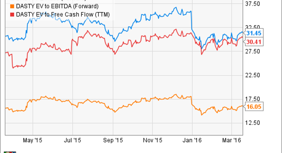 DASTY P/E Ratio (Forward) data by YCharts.