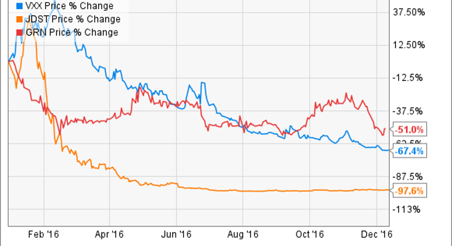 After several years with no major market downturns, many investors have looked to volatility ETFs as a way to bet on a future crash. Yet even though there were some periods of volatility in the stock market during 2016, the continuation of the bull market into an eighth year caused big losses for those who were counting on the long-awaited bear to come out of hibernation.