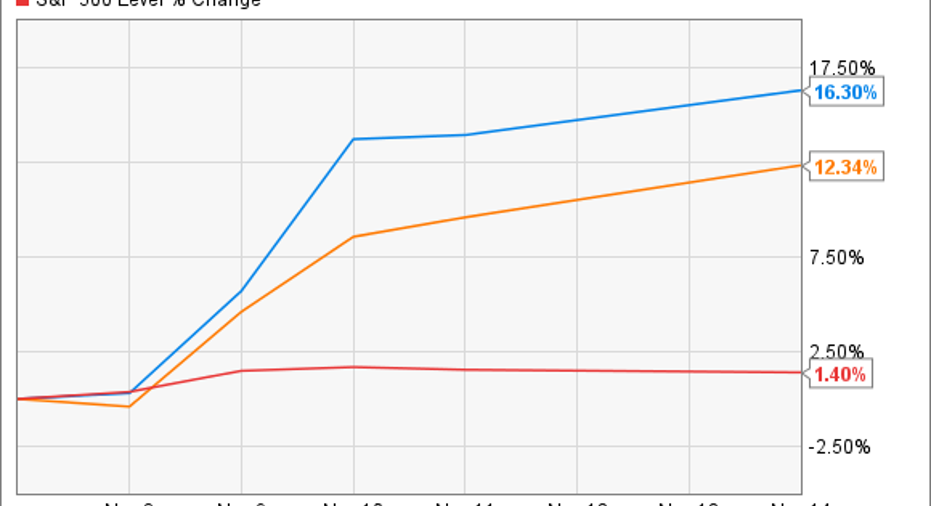 Donald Trump's victory in last week's presidential election may have ushered in a renaissance for bank stocks, as shares of the KBW Bank Index have climbed 12% since closing on election day -- i.e., before the results were known.