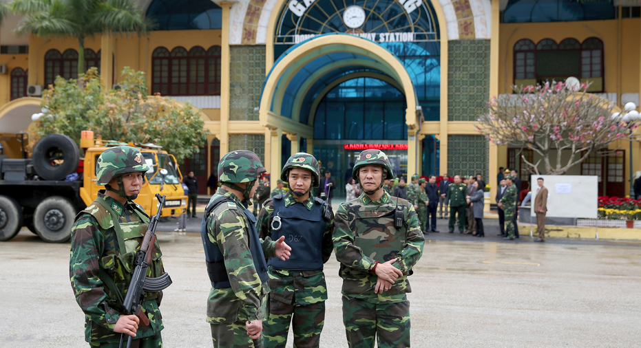 Hundreds of soldiers guarded the area near the Dong Dang railway station on Monday ahead of Kim's expected arrival. Kim may get off his train in Dong Dang and finish his journey to Hanoi by car.