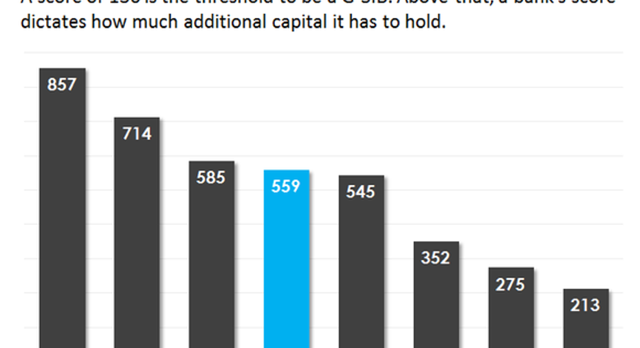 If a bank's score is above a certain threshold, then it's considered by the Fed to be a G-SIB, and thus subject to higher capital requirements. Seven banks, in addition to Bank of America, made the cut: