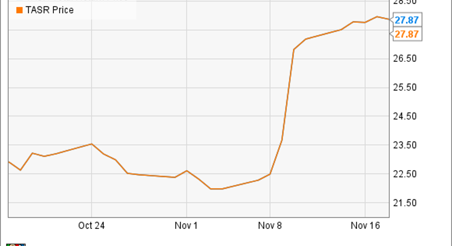I think the key here lies in Imperial's $27 price target, and the fact that the analyst didn't change that despite changing its rating. As you can see in the chart above, prior to earnings, TASER stock had spent several weeks trading in the $22-per-share range. In fact, on Oct. 14, when Imperial Capital first initiated coverage on TASER and assigned its $27 price target, the stock still cost less than $23. That gap between $23 price and $27 worth looked like an opportunity to Imperial.