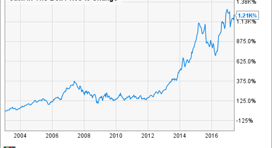 Jack in the Box's share price has been a sight to beholdsince the company bought Qdoba. Data by YCharts.