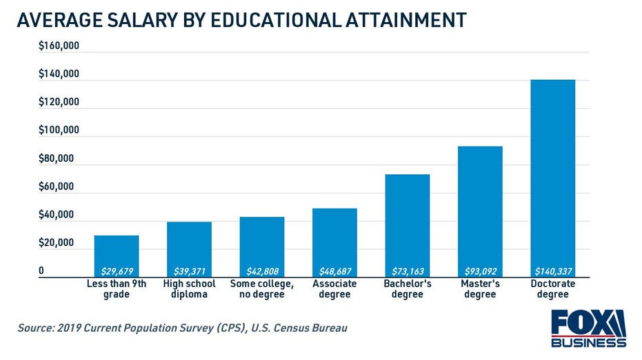High school graduates make about $39,000 per year, while those with a Bachelor's degree earn $73,000. The potential for higher earnings increases with post-secondary education, with Master's degree graduates earning $93,000 and doctorate recipients pulling in well over six figures at $140,000.