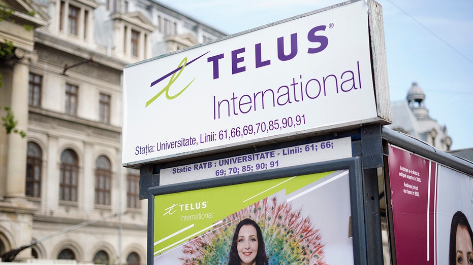 An advertisement for Telus International is seen in Bucharest, Romania on April 29, 2019. Telus International is an IT outsourcing company with operating worldwide. (Photo by Jaap Arriens/NurPhoto via Getty Images / Getty Images)